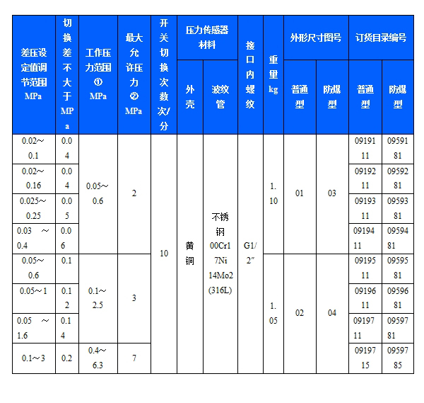 540/7DD防爆差壓開關(guān)采用波紋管式的傳感器,可用于無(wú)腐蝕性的氣體和液體介質(zhì)。540/7DD防爆差壓控制器的設(shè)定值可調(diào),調(diào)節(jié)范圍0.02~3MPa,其工作壓力范圍0.05~6.3MPa。