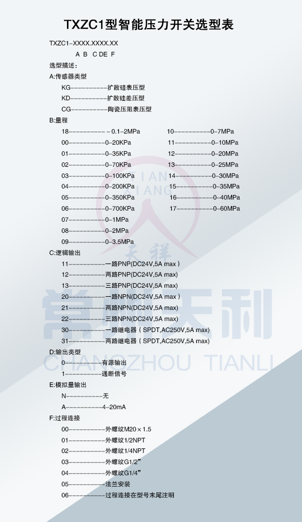 今天給客戶介紹下常州天利產(chǎn)品TXZC系列智能壓力開關(guān)其中的一款產(chǎn)品,具體介紹下概述和選型。